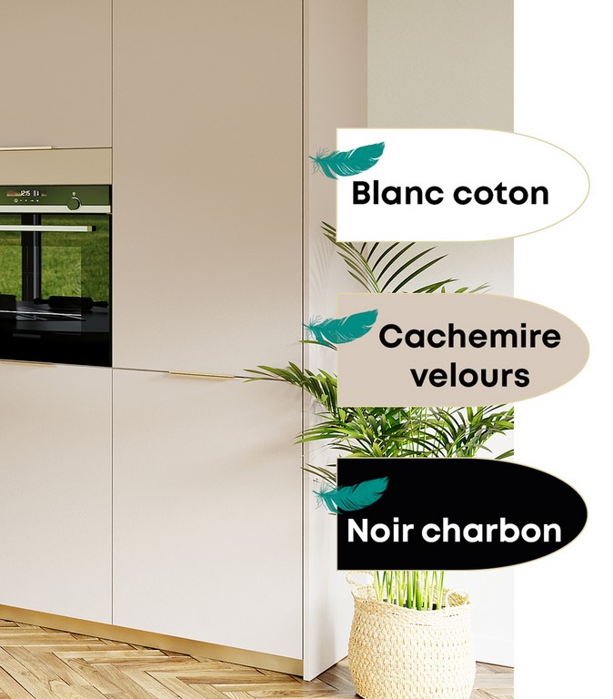 Disponible en 3 coloris (Blanc coton, Cachemire velours et Noir charbon), cette nouvelle gamme a la spécificité d’allier esthétisme et prix compétitif. En mélaminé laqué super mat, ce modèle de façade est anti-traces de doigts avec en prime un touché velours.