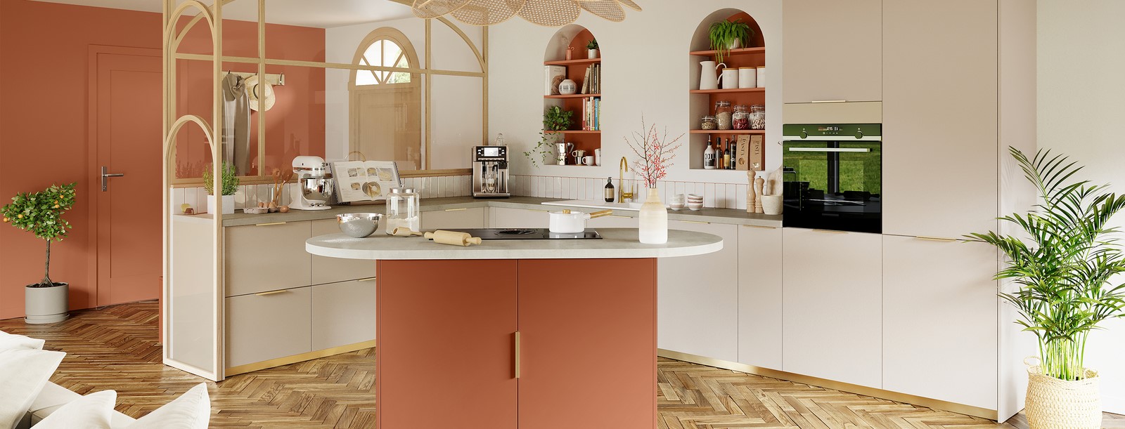 Le temps s’arrête l’espace d’un instant. Laissez-vous séduire par la douceur du coloris cachemire associé à la couleur terracotta.