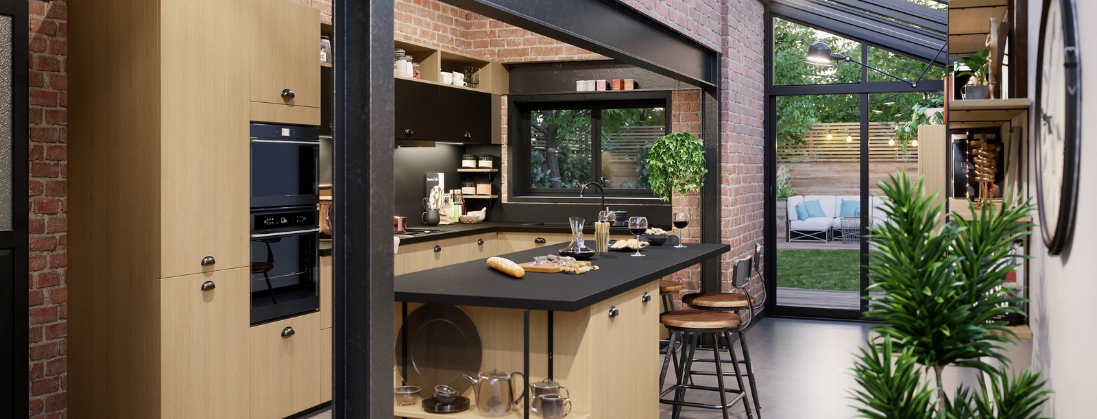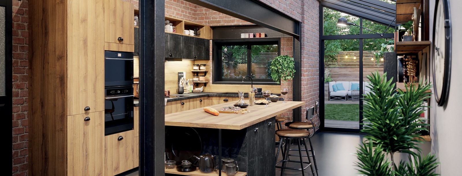 En rénovant votre maison, pensez au style industriel pour votre cuisine équipée. L'alliance du noir et du bois est toujours un succès garanti.