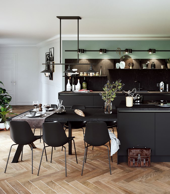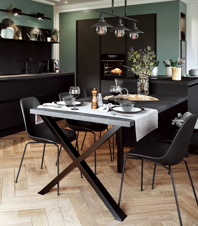 Osez le total look noir et affirmez votre caractère. Petite astuce : jouez avec la couleur sur les murs ou votre linge de table.